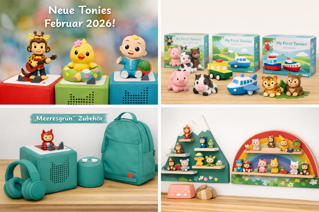 Die Tonies-Neuheiten im Februar 2026 bieten eine tolle Mischung aus Musik, Geschichten und multisensorischen Erlebnissen für alle Altersgruppen – von den Kleinsten mit My First Tonies bis zu mitreißenden Partyliedern für größere Kinder. Die neuen Farben und Regale machen das gesamte Tonie-Erlebnis noch vielseitiger und schöner – perfekt für euren Familienalltag!