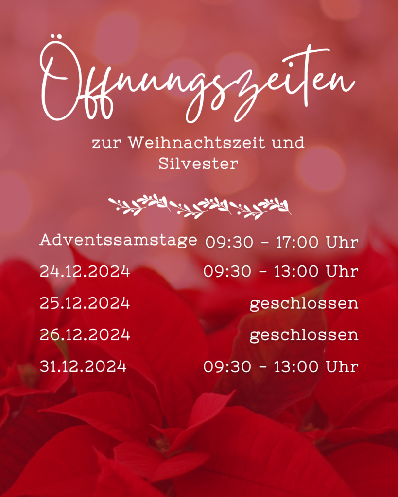 Öffnungszeiten zur Weihnachtszeit und Silvester Weiterlesen »